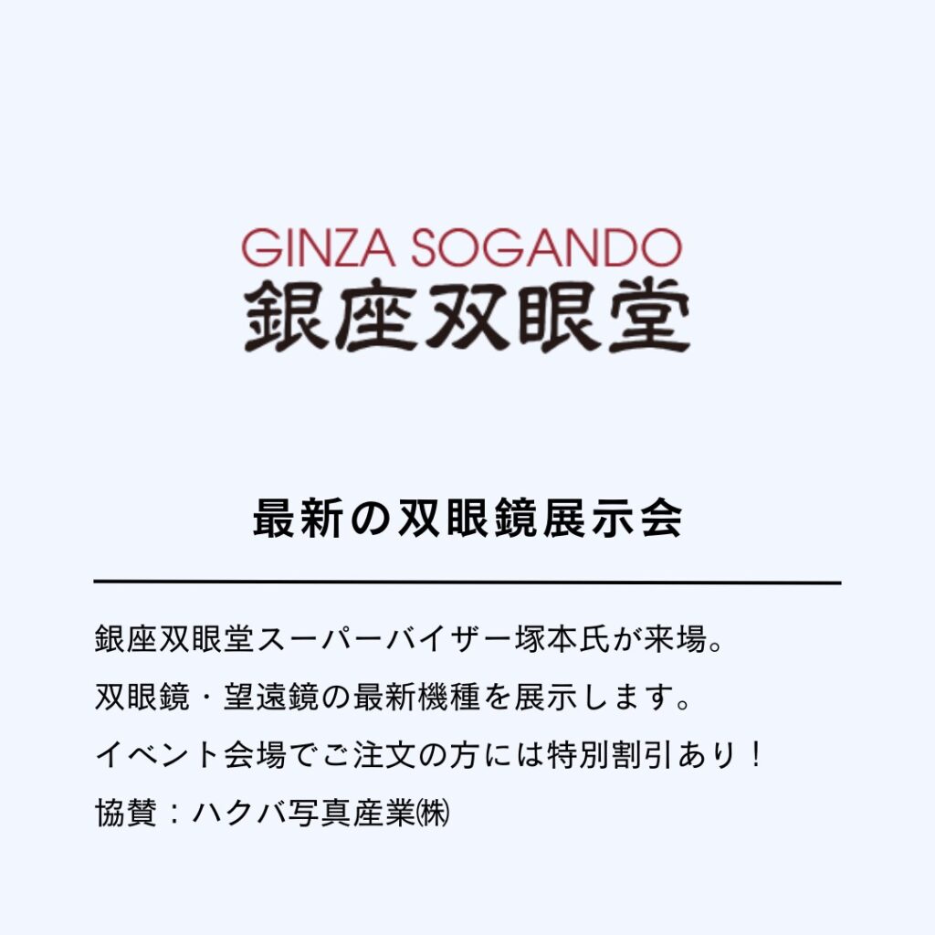 • 銀座双眼堂スーパーバイザー 塚本英夫さんがご来場。スワロフスキー(双眼鏡・望遠鏡)の最新機種などを展示します。イベント会場でご注文の方には特別割引あり!